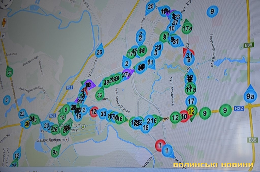 В управлінні транспорту та зв’язку студентам показали, яким чином можна контролювати роботу луцьких маршруток у режимі онлайн. Так, у березні минулого року запустили систему мультимедійного автоматизованого комплексу доступну для кожного лучанина. Головний спеціаліст відділу Інна Артемчук продемонструвала, як контролюють роботу громадського транспорту в управлінні. Так, на інтерактивній мапі є точки контролю, які показують відхилення автобусів від розкладу руху. Начальник управління Анатолій Миронюк розповів, що точність дотримання графіку повинна досягати 95%, проте поки жоден перевізник не досяг таких показників. Наразі точність становить не більше 92%.