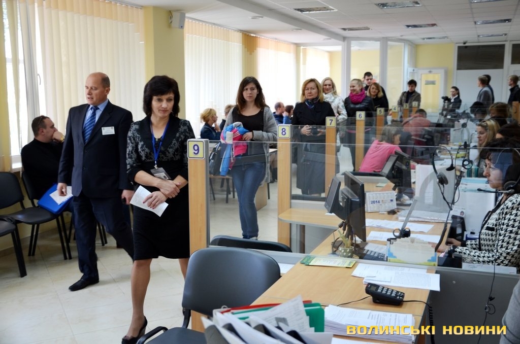 Останнім пунктом екскурсії став найсучасніший підрозділ міськради – Центр надання адміністративних послуг. Про його роботу розповіла директор департаменту Лариса Карп’як. З її слів, наразі центр надає 268 адміністративних послуг, протягом дев’яти місяців цього року його послугами скористалося понад 74 тисячі суб’єктів звернень. У центрі діє електронна черга: кожен відвідувач отримує талон та чекає своєї черги, слідкуючи за електронним табло. Адміністратори центру приймають документи відвідувачів, скріплюють їх цифровим підписом та передають у відповідну службу. Директор розповіла, що усі розмови відвідувачів та адміністраторів записуються, працюють також камери спостереження, щоб запобігти корупції, а рівень обслуговування адміністраторів можна анонімно оцінити, кинувши чек у одну з трьох скриньок.
