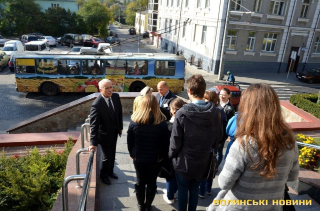 Після оглядин учасники екскурсії перейшли у сусідню будівлю, у якій розташовані відділ у справах сім’ї та молоді, управління транспорту та зв’язку та інші підрозділи Луцькради.