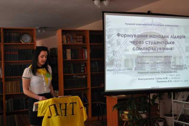 Студентки виступили з темою роботи «Формування нових лідерів через студентське самоврядування». Наукові керівники викладачі кафедри іноземних мов - Олена Ковальчук, Алла Губіна та Лариса Пилипюк.
