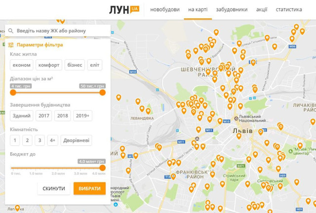 Вибрати житло в новобудові стало простіше. Для цього створили інтерактивну карту, на яку нанесені всі об’єкти первинної нерухомості від забудовників.