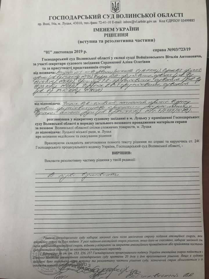 Своєю чергою, Волинська облспоживспілка через це подала позов до суду.
