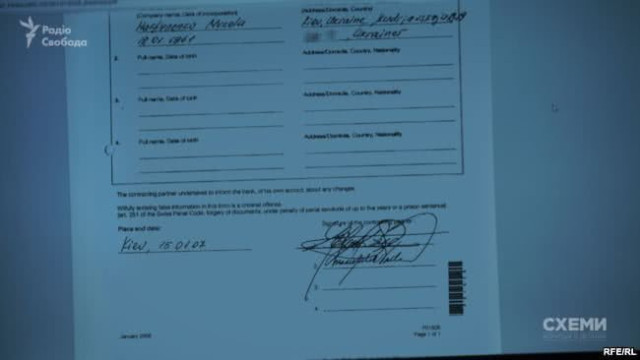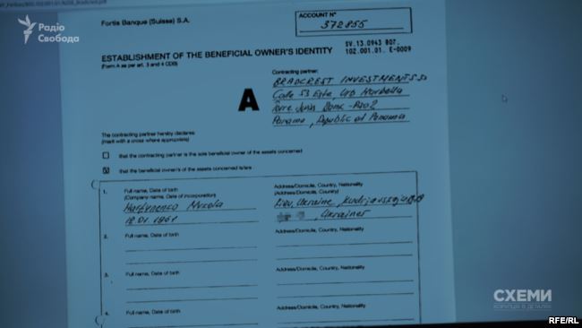 Форма ідентифікації бенефіціара зі швейцарського банку, де Мартиненко вказаний як бенефіціар