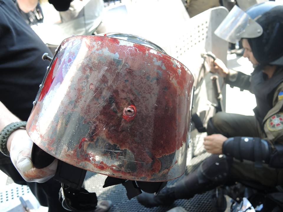 Натовп хлинув на кордон правоохоронців – в хід пішли палиці, камені та димові шашки. Пізніше з натовпу у кордони міліції полетіли бойові гранати.
