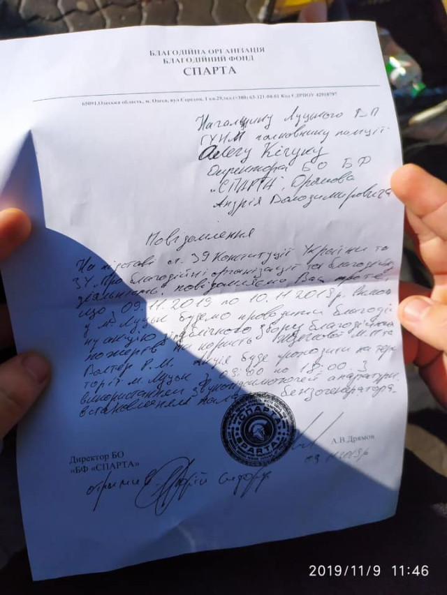 "При дослідженні ситуації, працівниками міськради було виявлено лише повідомлення про захід начальника ГУ НП у м. Луцьку Кічука О.Б., що не є документом, який дає право на проведення таких акцій.