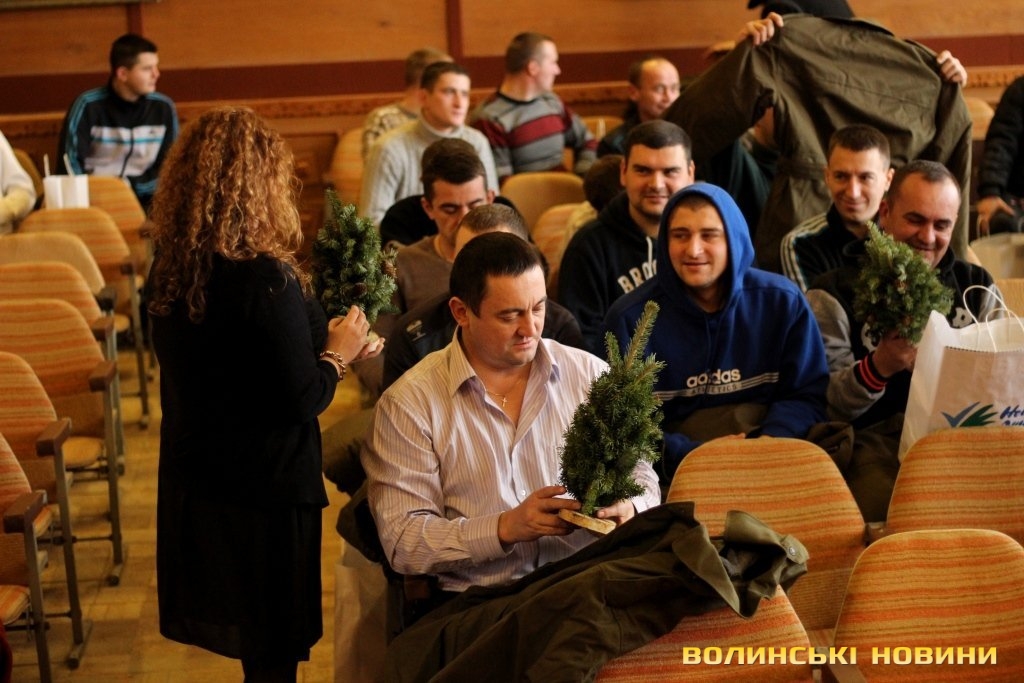 Після виступів військовим вручили подарунки, серед яких – справжні ялинки.