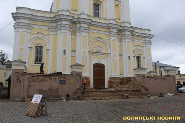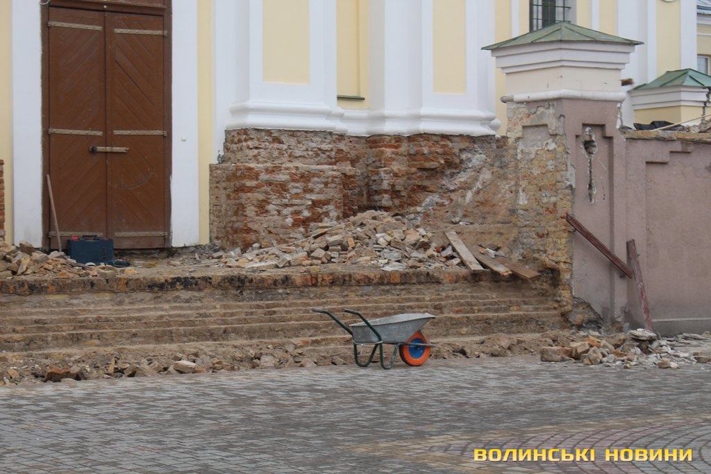 Так, робітники зняли верхній шар, розібрали частину сходів. Зауважимо, місцевий краєзнавець Ігор Левчук вважає, що ця реконструкція самовільна і жодних погоджень на ці роботи у Волинської єпархії УПЦ КП немає. Він висловив стурбованість з цього приводу й розповів, що звернувся у відповідні органи охорони культурної спадщини.Натомість голова інформаційно-видавничого центру єпархії протоієрей Віталій Собко переконує, що всі дозволи та погодження на реконструкцію у них є. Також він запевнив, що найближчим часом оприлюднить усі дозвільні документи.Нагадаємо, як повідомляло Інформаційне агентство Волинські Новини раніше, будівництво, яке розгорнули поблизу Свято-Троїцького собору, стурбувало лучан. 25 грудня у Луцьку громадські активісти, краєзнавці, депутати призупинили будівельні роботи, які велися на території собору, а саме на кладовищі, яке входить в охоронну зону пам’ятки національного значення.