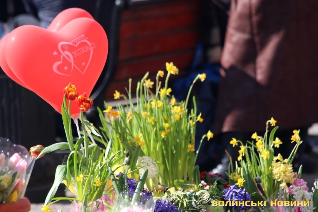 Цього дня вулиці міста заполонили чоловіки із квітами та закохані пари. Не складно зауважити, що 8 березня, незважаючи на те, що Україна поступово відмовляється від свят радянських часів, міжнародний жіночий день для лучан залишається звичним святом весни та жінок.