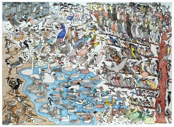 Зі слів його матері, хлопчик знає імена та латинські назви більшості з 400 птахів, зображених на картині.