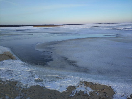 Озеро Світязь у Шацькому районі через аномальні березневі морози вкрите товстим шаром льоду.