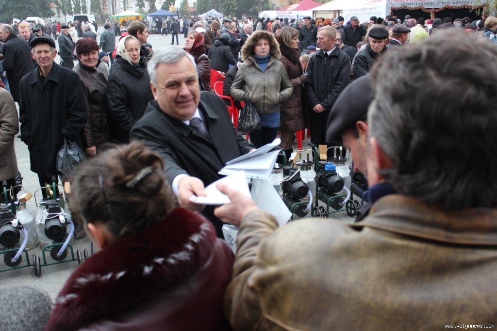 Напередодні професійного свята працівників сільського господарства України 16 листопада у Луцьку відбулися урочисті збори, ярмарок сільгосппродукції і вручення доїльних апаратів фермерам.