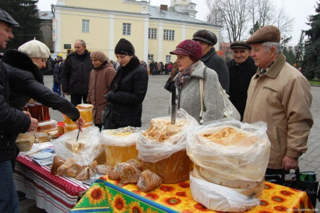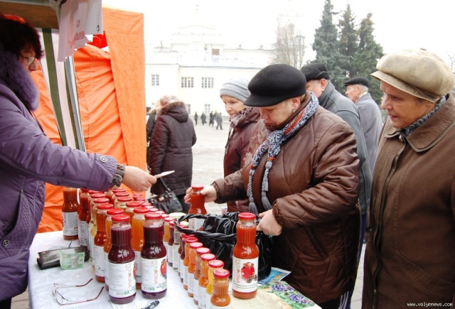 Розпочалося святкування ярмарком сільгосппродукції на Театральному майдані Луцька. Придбати тут можна переважно харчові продукти, а ще одяг, рослини.