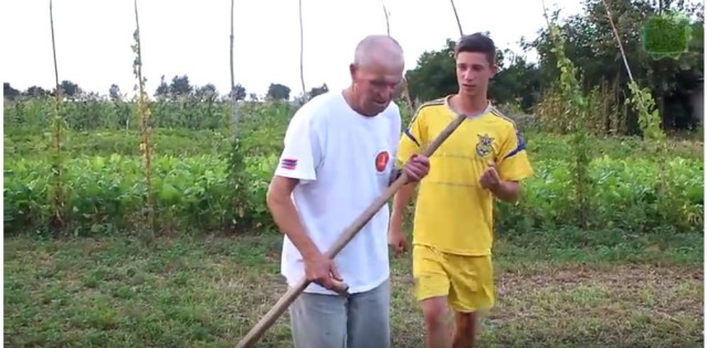 Колишній сільський голова Леонід Завгородній провів журналістам екскурсію до так званого доту – оборонної точки, яка захищала солдат під час Другої світової війни. Таких точок є 24, якщо їх реставрувати, вони можуть стати цікавими туристичними місцями.Також познайомилися з 85-річним Володимиром Харитоновичем та його 82-річною дружиною. Ведучий ознайомився з їхнім господарством, козами Даною і Пушинкою, зголосився годувати їхніх свиней Хрюшу і П'ятачка та ще й дивувався: «Свиням – молоко? А губа не трісне?».Також Андрій спеціальним пристроєм теребив квасолю, чистив картоплю і заслужив на обід.«Що це ти на руках намалював? Ото маладьож!» - хитає головою господар, побачивши татуювання хлопця.Після обіду – знову до роботи: вчилися доїти козу Дану, проте господиня журналістів швидко прогнала, мовляв, «то буде довга пісня».