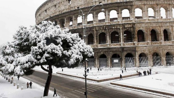 Столицю Італії Рим та південні області Кампанію, Апулію і Калабрію накрило снігом. Крім того у країну прийшли аномальні холоди.