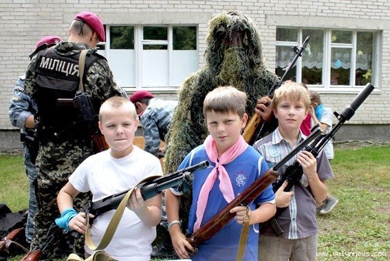 А проводжали працівників міліції діти веселими піснями та оплесками.