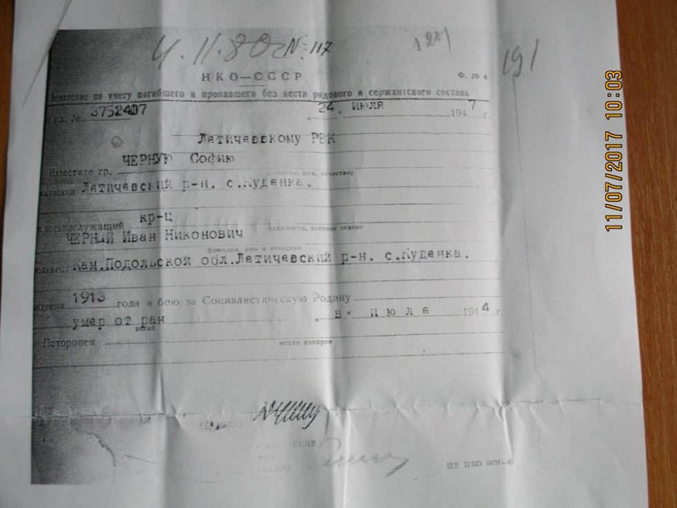 Нещодавно у Горохівську міську раду звернувся Григорій Чорний, житель села Кудинка Летичівського району Хмельницької області, з проханням вказати йому місце поховання його батька Івана Чорного, який у липні 1944 року загинув на території району.