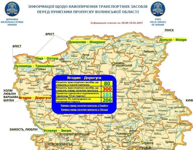 Як результат, віднедавна на офіційному сайті Волинської ОДА розміщено інтерактивну карту з інформацією щодо накопичення транспортних засобів перед пунктами пропуску Волинської області та інтерактивну карту функціонування підрозділів митного оформлення у Волинський області.
