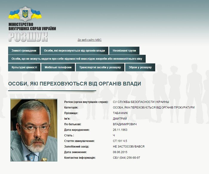 Інформація про це розміщена на сайті МВС у розділі "особи, які переховуються від органів влади".