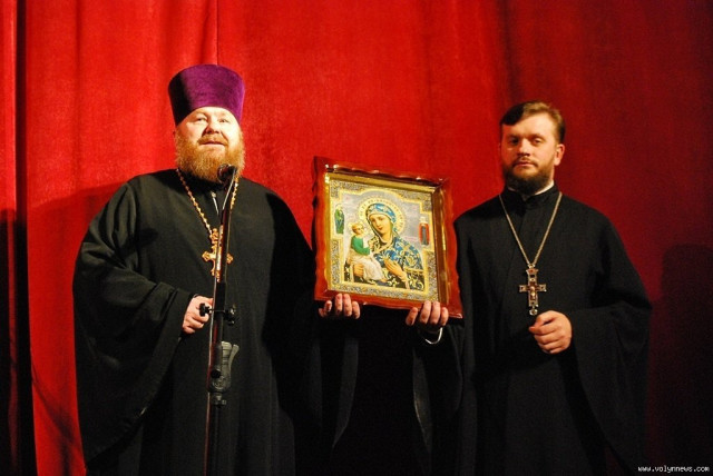 Священнослужителі УПЦ привітали Віктора Божидарника та вручили йому подарунок – ікону Божої матері.