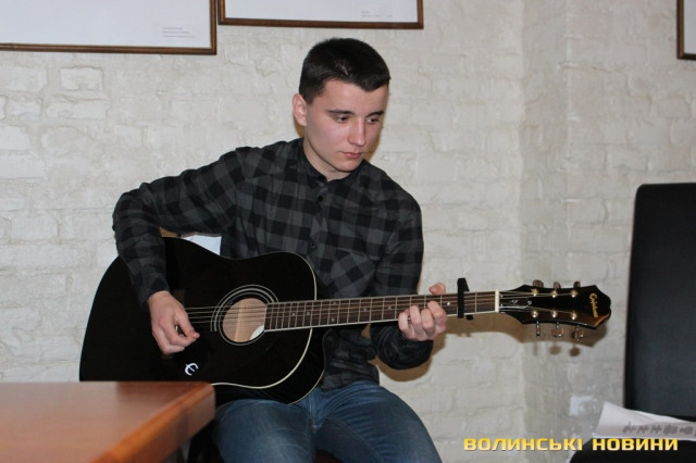 Окрім віршотерапії, на вечорі організували і музичну. Спеціально для цього запросили гештальт-музиканта та юнгіанця зі Львова Ігоря Хоркавого. Він лікував лучан грою на гітарі.