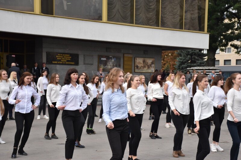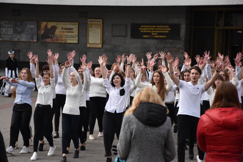 Захід розпочався із вітального флешмобу молодих вчителів на Театральному майдані перед облмуздрамтеатром. Потому вчителів привітав декан богословського факультету Волинської православної богословської академії, священник Василь Лозовицький.Своєю чергою, заступник міського голови Ірина Чебелюк також долучилася до привітань: