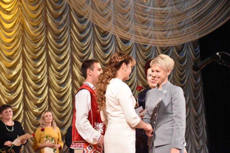 Тому, користуючись нагодою, хочу вас усіх привітати та побажати багато-багато здоров’я, безмежних сил, величезного натхнення, безмежної любові та незмірного щастя. І нехай кожна ваша мрія та задумка обов’язково втілюється в життя».За багаторічну сумлінну працю, високий професіоналізм, активне впровадження інноваційних технологій в освітній процес, вагомий особистий внесок в реалізацію державної політики у галузі освіти та з нагоди професійного свята педагогів нашого міста було нагороджено Почесною грамотою міського голови.Із вітальним словом до присутніх звернувся також радник міського голови Ігор Поліщук.
