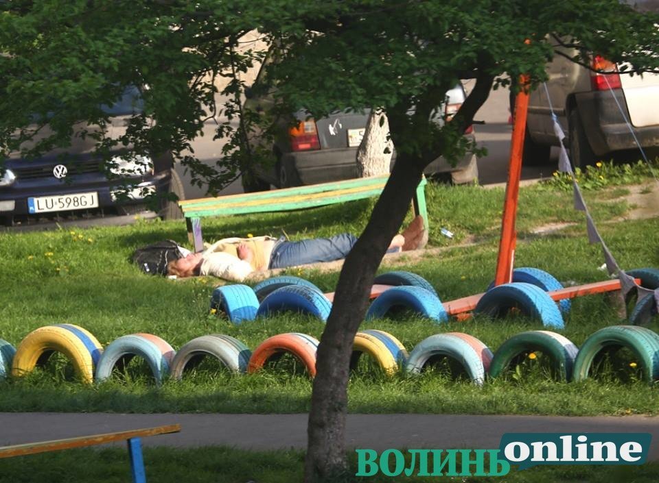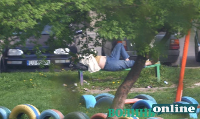 То на лавці, то на землі: на луцькому дитмайданчику спала п'яна жінка