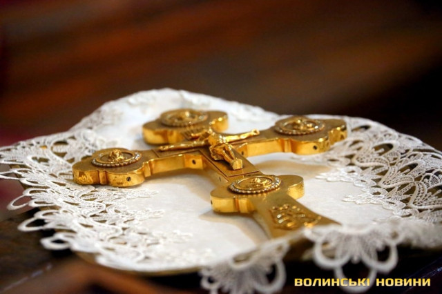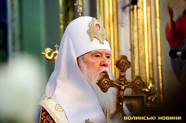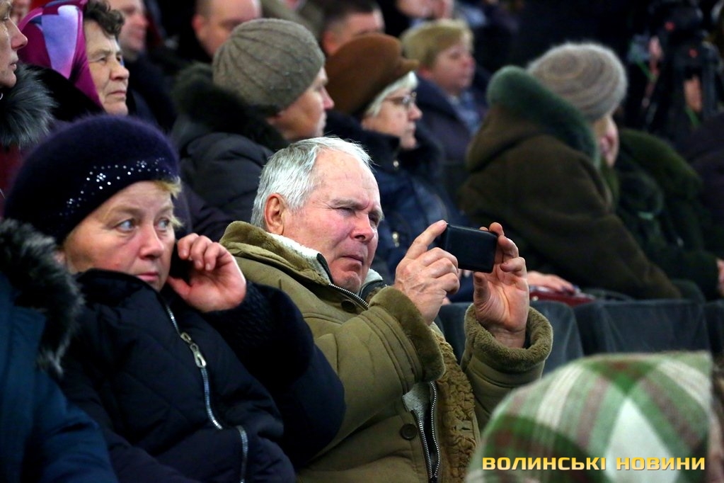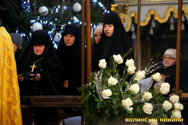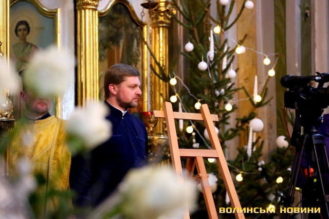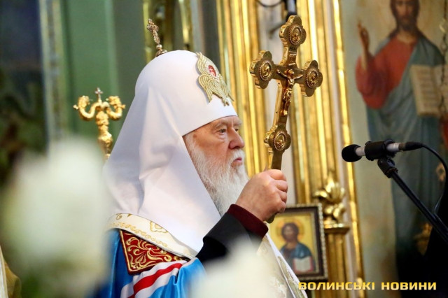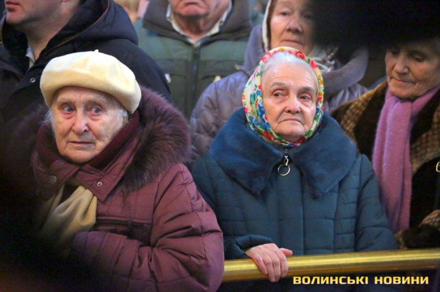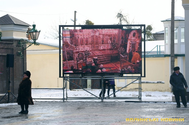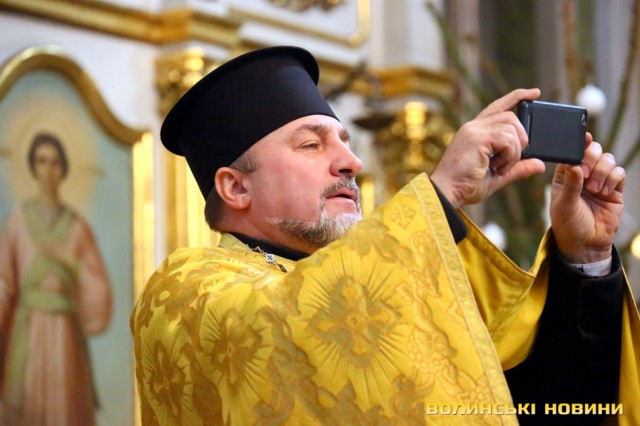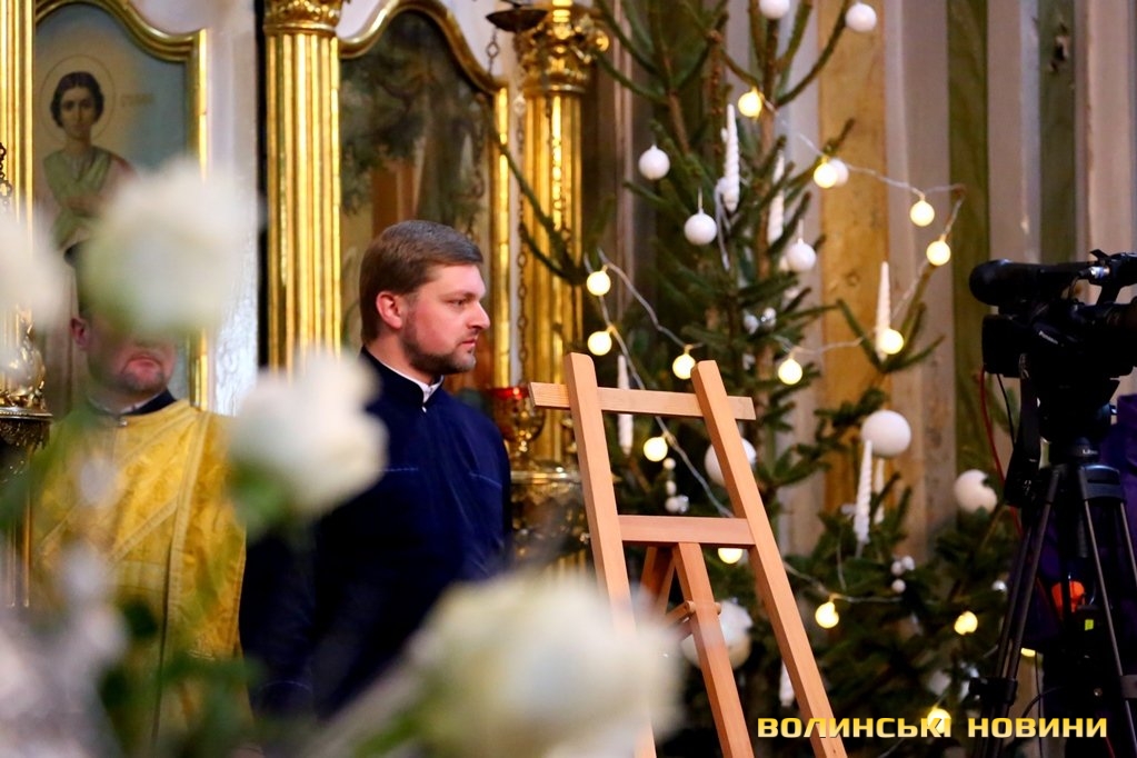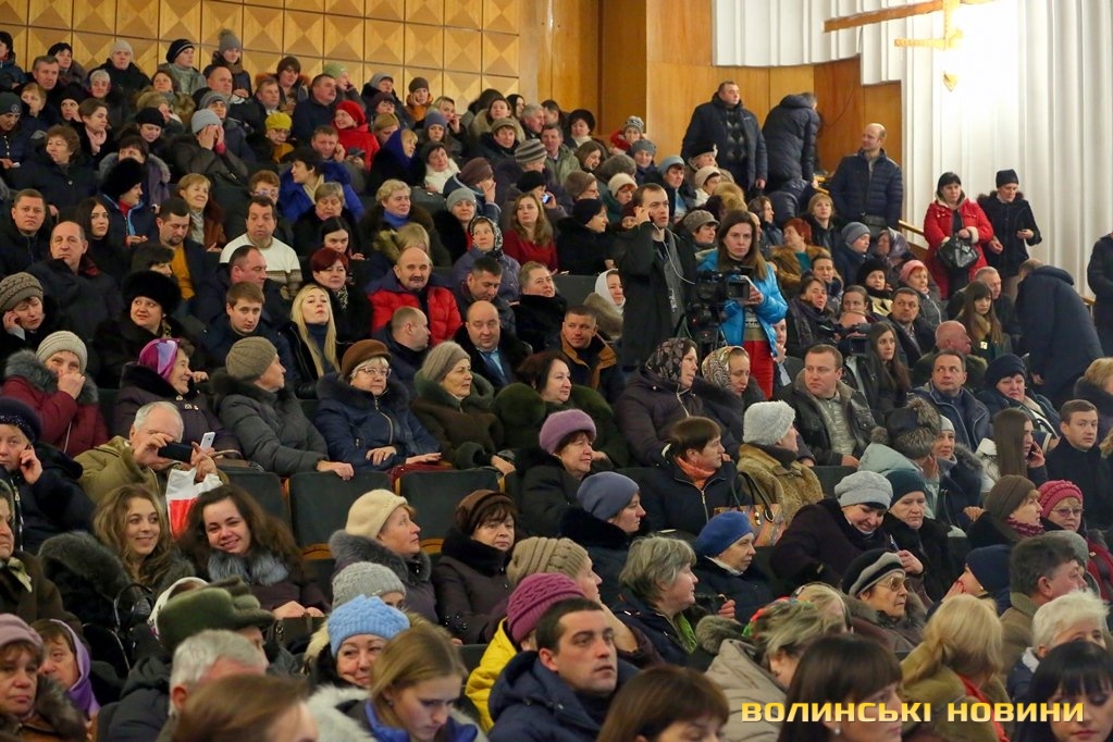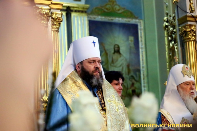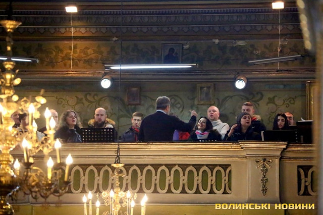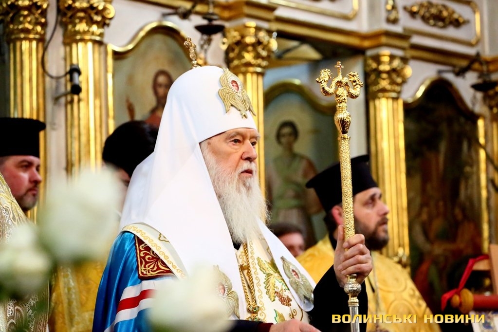 Однак, пробравшись крізь натовп з головою ОДА Олександром Савченком, президент вже був у Соборі. Зауважимо, що гаранта зустріли дуже тепло, а окремі прихожани навіть цілували йому руки. Також поблизу входу до вівтаря на заздалегідь розміщеній тринозі встановили Томос про автокефалію, на якому Порошенко акцентував свою основну увагу в промові після богослужіння.Однак першим до присутніх у соборі лучан звернувся Філарет, який зазначив, що Україна 25 років чекала надання Українській православній церкві автокефалії: «Багато років ми чекали того моменту, коли вселенський патріарх Варфоломій надасть нам Томос про автокефалію... Ми дякуємо Богу за те, що надав нам незалежність і створив умови для того, аби вселенський патріарх зважився на цей крок, усупереч Москві».