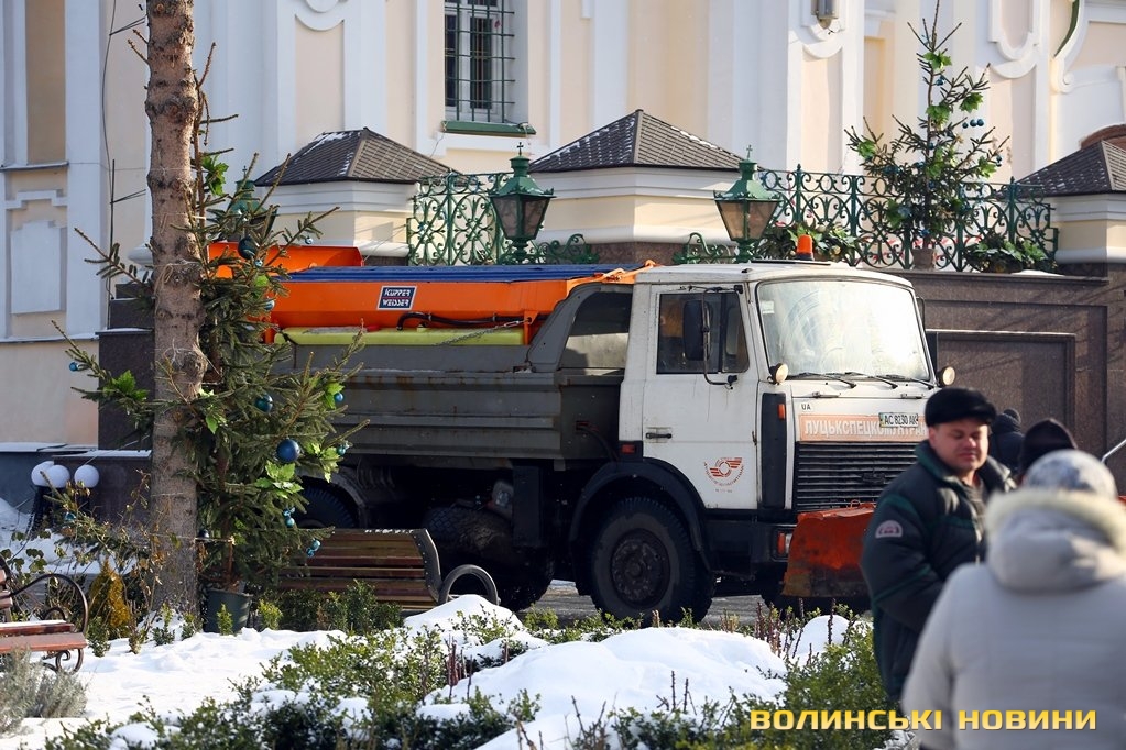 Вже сьогодні за годину до офіційної години прибуття гаранта до Луцька (11.30) на Театральному майдані та згодом у дворику Свято-Троїцького собору машина «Луськспецкомунтрансу» розчищала площі, на які вже згодом мала ступити нога президента. Налаштовувалися на візит гаранта і правоохоронці, які вже чатували поблизу входу на територію собору. Для тих, хто не зміг потрапити безпосередньо в собор, встановили екрани на вулиці, аби люди могли спостерігати службу.Тим часом сотні людей за розпорядженням голови Волинської ОДА Олександра Савченка звезли з районів області до Луцька, аби забезпечити масовку Петру Порошенку. Аби приховати цей факт, людей висаджували не в центрі міста, де планувалася зустріч з гарантом, а на вулицях Набережній та Шевченка. Як повідомили Інформаційному агентству Волинські Новини, явку людей перевіряли за попередньо складеними списками.Медійники, своєю чергою, попрямували всередину Свято-Троїцького собору, аби вибороти собі найкраще місце для зйомки та фотографування Томосу та Петра Порошенка, який і мав привезти його у рамках, як його вже охрестили, «Томос-туру».Однак першим прибув не Порошенко, а почесний патріарх Православної церкви України Філарет, якого присутні зустріли оплесками та спільно з ним заспівали «Нова радість стала».Президент запізнювався – його борт приземлився на військовому аеродромі лише в 11.50, однак за 25 хвилин Порошенко прибув у центр міста, де окремі лучани зустріли його з плакатами-запитаннями з прізвищами людей, пов’язаних з резонансними корупційними скандалами та вбивствами в Україні.