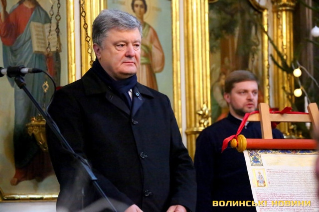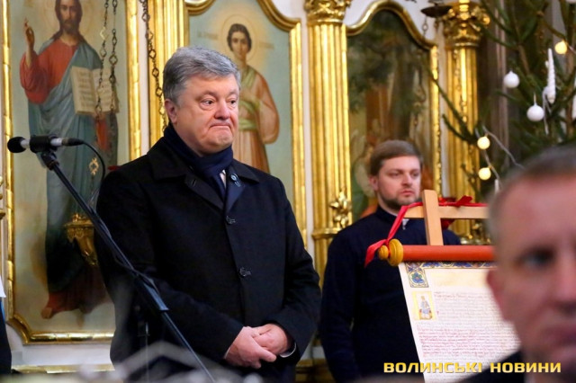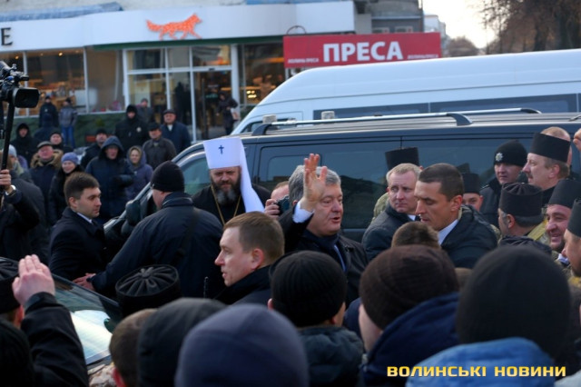 Цілий тиждень волиняни очікували прибуття глави держави Петра Порошенка до Луцька та інших міст області, а все тому, що візит президента спочатку був запланований на один день, а потім чомусь перенесений на зовсім інший. Нарешті 15 січня до обласного центру Волині гарант привіз Томос, на якому зробив основний акцент візиту. Заразом Петро Порошенко заїхав до Ківерець та Рожища, де відзначився фактично двома однаковими передвиборчими промовами.