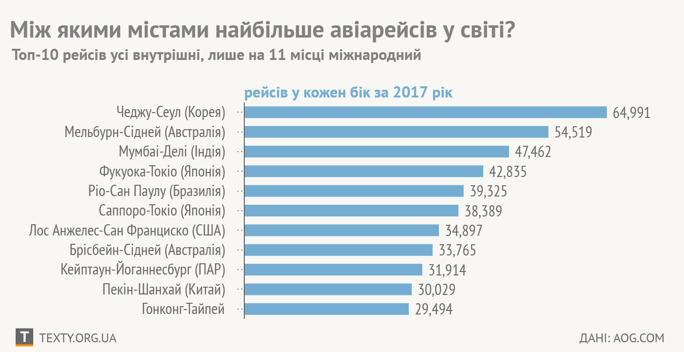ТОП-10 найпопулярніших авіарейсів світу. Інфографіка