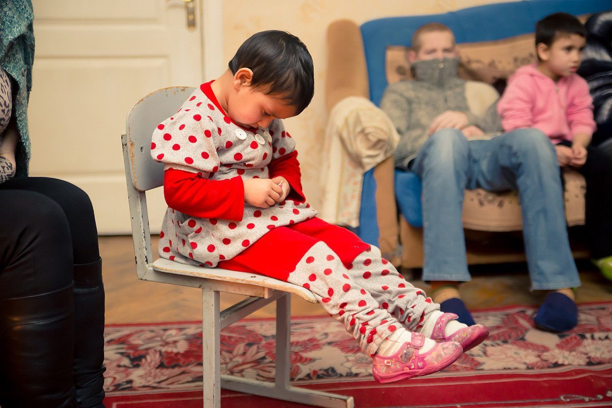 зверніть увагу на очі дітей... у маленьких діток в очах сум, в більших ( 4-ка дівчат) - ненависть
