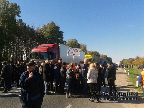 Близько 80 страйкарів перекрили автодорогу сполученням Київ – Ковель – Ягодин сьогодні, 9 жовтня о 12-й годині. За станом на 13 годину рух відновлено.