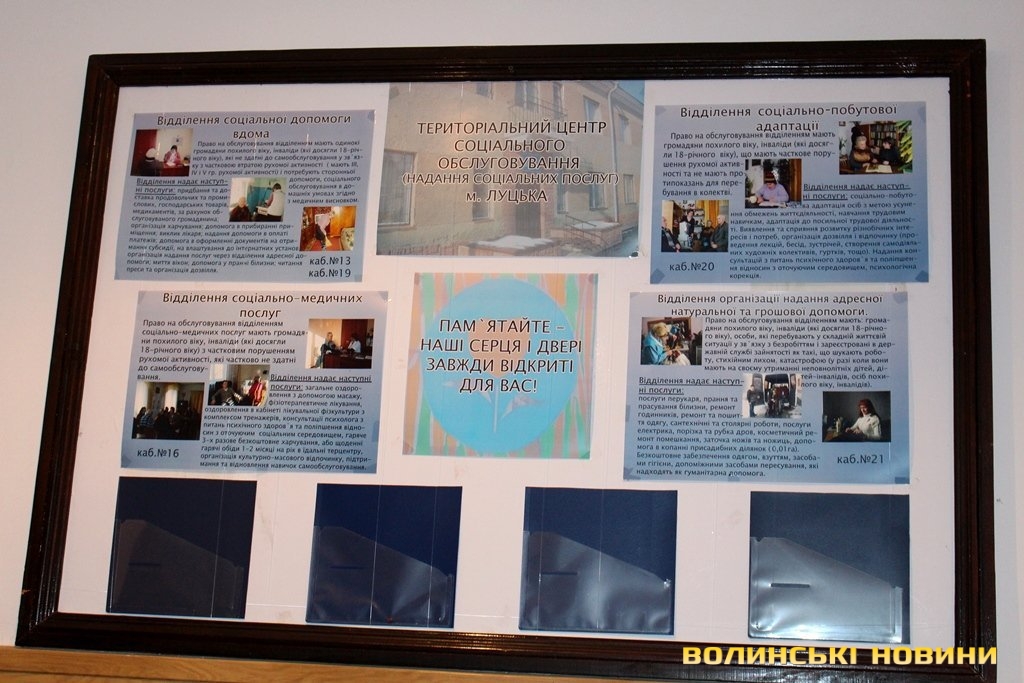 Територіальний центр соціального обслуговування створили у 1994 році. Але історія таких служб починається ще у 80-х роках минулого століття. Тоді при відділах соціального захисту, щоб надавати соціальну допомогу одиноким громадянам та інвалідам, були створені соціальні відділення допомоги на дому. Їх працівники не лише надавали послуги одиноким громадянам, а й займалися вивченням проблем цих людей.А у листопаді 1994 року, аби розширити спектр послуг та більш повно забезпечити потреби соціально незахищених верств населення, був створений Луцький міський територіальний центр. Його працівники у будь-яку погоду, будь-якими шляхами, добиралися до людей, які залишилися з різних причин самі, допомагали їм по господарству, доглядали їх.Завідувач відділення соціальної допомоги вдома Луцького міського територіального центру соціального обслуговування Ольга Василівна Байда у соціальній сфері працює з 1992 року. На її ділянці – 242 людини. Вона не уявляє себе поза роботою.Жінка розповідає, що їхні підопічні часто дуже вразливі люди, до яких потрібен тонкий підхід.