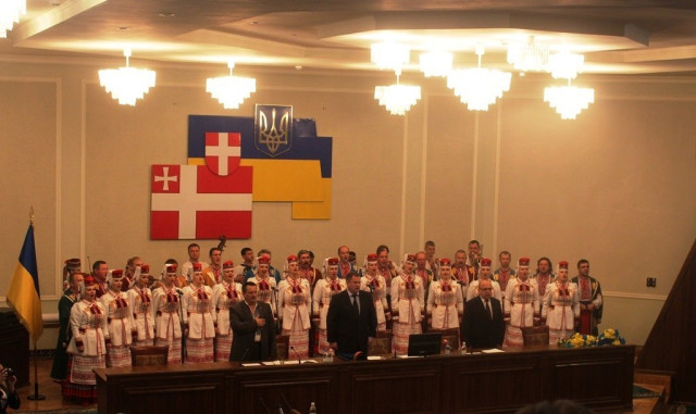 Потому Волинський хор заспівав Гімн України. З трибуни посадовці різних рівнів зверталися до присутніх з вітальним словом.