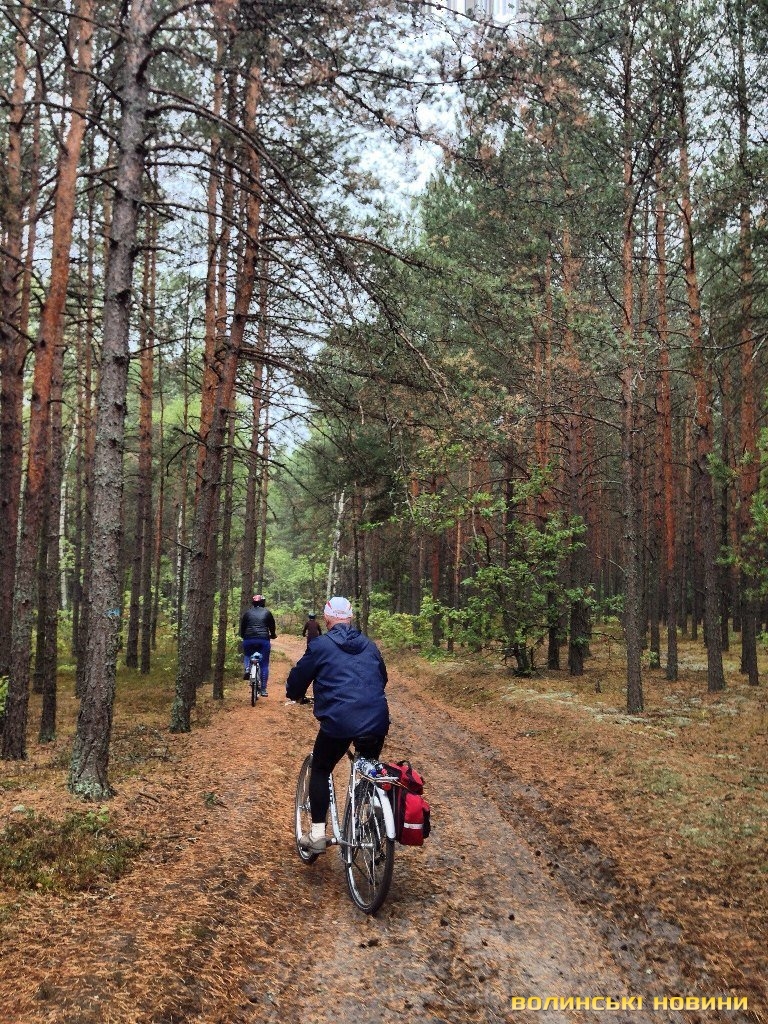 До слова в Уршуліні діє Поліський народний парк, який обов’язково варто відвідати знаходячись у цьому місці. Тут не лише надають туристичні послуги, але й, приміром, займаються розведенням та дослідженням деяких видів тварин. Тут же можна взяти в оренду туристичне спорядження та дізнатися про навколишні туристичні принади. Як виявилось, на території парку є декілька озер, навколо яких пролягає веломаршрут. Більш досвідчені велотуристи Олександр Ковальський та Михайло Скуба «підбили» скласти компанію в післяобідній мандрівці і мене, про що зовсім не пожалкував, не зважаючи на те, що повернулись ми по заходу сонця, «накрутивши» за день додаткових 30 кілометрів.В цьому і полягає специфіка розробленого маршруту: зважаючи на свої бажання та можливості турист сам для себе визначає навантаження. Тим, кому 50 кілометрової подорожі здалось мало може додати до неї ще декількадесят, вивчаючи навколишні пам’ятні архітектури чи мальовничу природу.