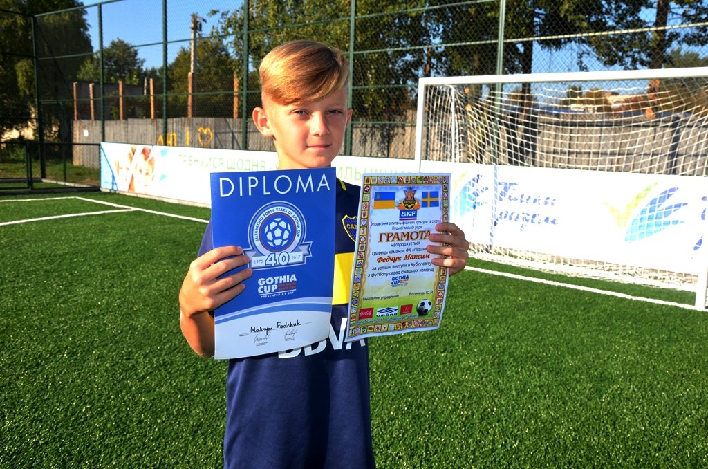 Гарні спортивні результати демонструє ще один учень цієї школи – семикласник Максим Федчук. Він входить до складу футбольної команди ДЮСШ-2, яка влітку побувала у Швеції на турнірі серед юнацьких команд. Лучани дійшли до півфіналу, що свідчить про професійну підготовку. Загалом Україну представляли лише дві команди: з Луцька та Києва. Максимко вражений кількістю і якістю спортивних полів у Швеції, але тішиться, що тепер і в його рідній школі можна буде тренуватися на сучасному полі.