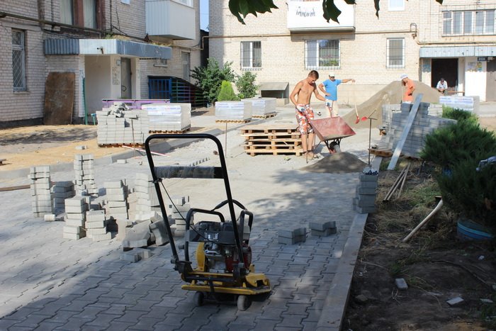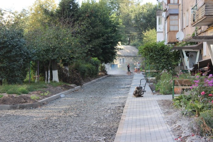Насамкінець побували на прибудинковій території на проспекті Грушевського, 7, 9, 9а. Тут теж активно тривають ремонтні роботи. Місцеві мешканці розповіли, що капітальний ремонт тут відбувається вперше за вперше за 18 років.