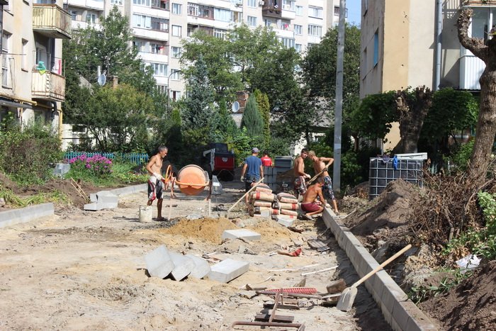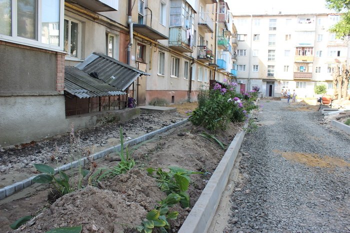 На Львівській 73 та 73 а здійснюється капітальний ремонт лише фасадних боків будинків, де розташовані підїздні шляхи, автостоянка та дитяча площадка. А що ж буде із тильною стороною будинків? Де проїжджа частина,тротуар? Там все залишилось без змін. Адже прибудинко́ва терито́рія — це територія навколо багатоквартирного будинку.