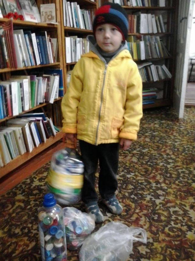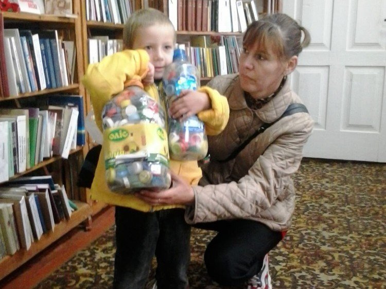 28 вересня малюк разом із мамою прийшов до бібліотеки за книжкою та приніс повну торбину пластикових кришечок.