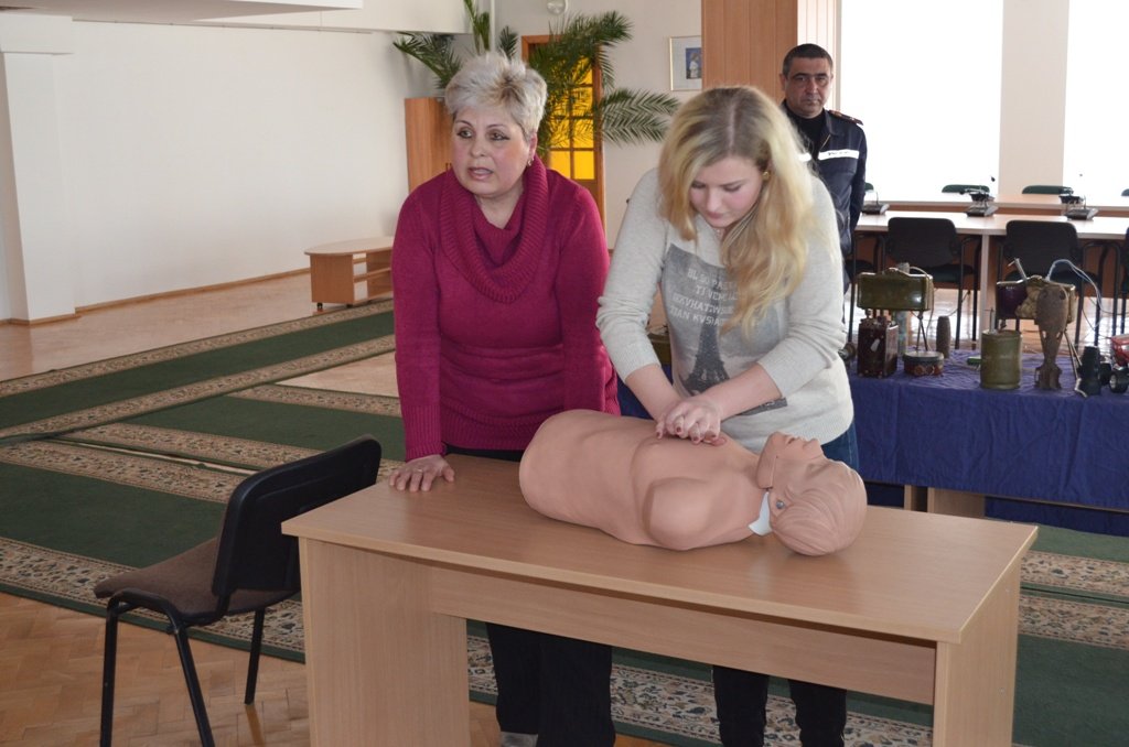 Окрім цього, рятувальники провели тренувальні заняття з надання першої домедичної допомогти. На спеціальному манекені навчили студентів виконувати непрямий масаж серця та штучну вентиляцію легенів. Опісля рекомендацій усі охочі могли самотужки потренуватися у виконанні реанімаційних заходів непритомній людині.