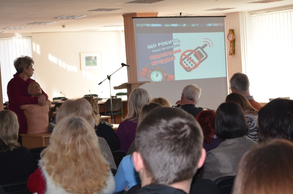 Аби зосередити увагу на конкретних порадах працівники ДСНС супроводжували навчання медійним елементом - демонстрували навчальні фільми та відеоролики соціального характеру: «Дії населення при виявленні вибухового пристрою або підозрілого предмету», «Оповіщення населення при надзвичайних ситуаціях», «Що робити, якщо Ви виявили підозрілий предмет», «Тривожна валіза», «Обережно! Терористична загроза».