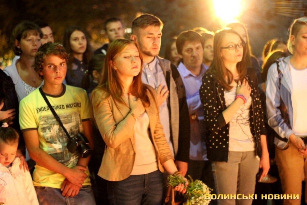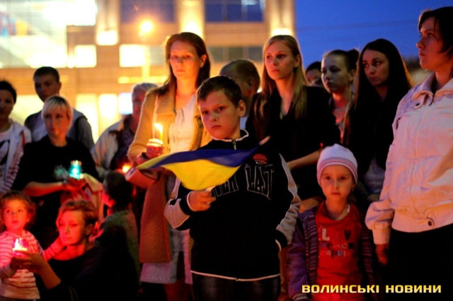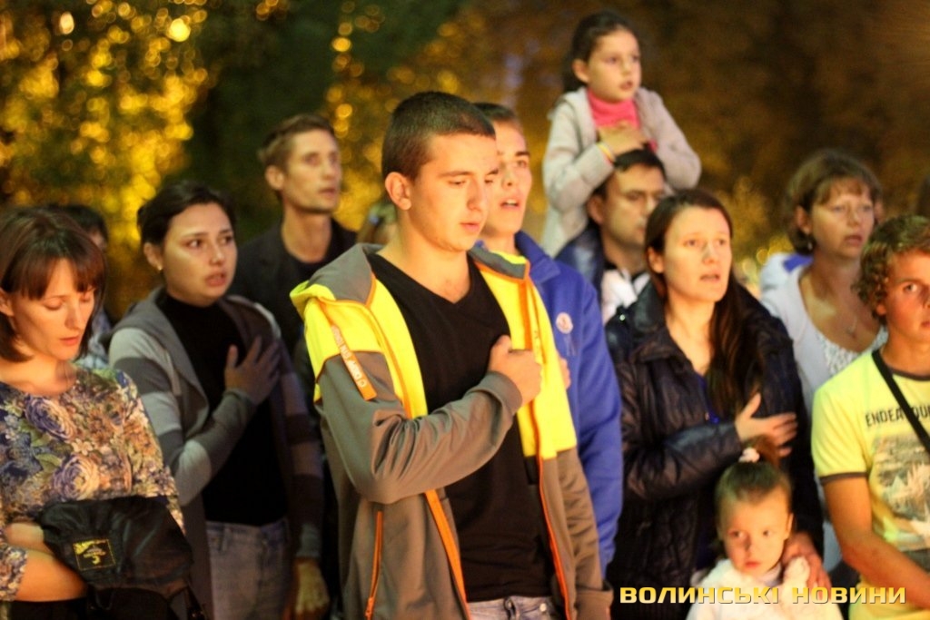 Захід, який ініціювали Громадський сектор Євромайдану та Фундація регіональних ініціатив, відвідали громадські активісти, пересічні лучани, депутати Луцькради та переселенці зі Сходу, які знайшли прихисток у Луцьку. На майдані зібралися десятки небайдужих лучан та гостей міста. Дехто приходив цілими родинами з національною символікою.
