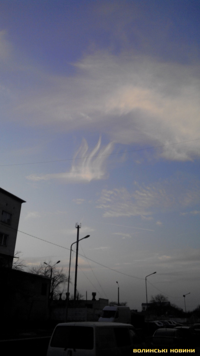 Фігурку з хмар, яка нагадує державний герб України, мали можливість побачити волиняни. Так, у вівторок, 24-го березня, у селі Маяки, поблизу Луцька, у небі над храмом з'явився тризуб.