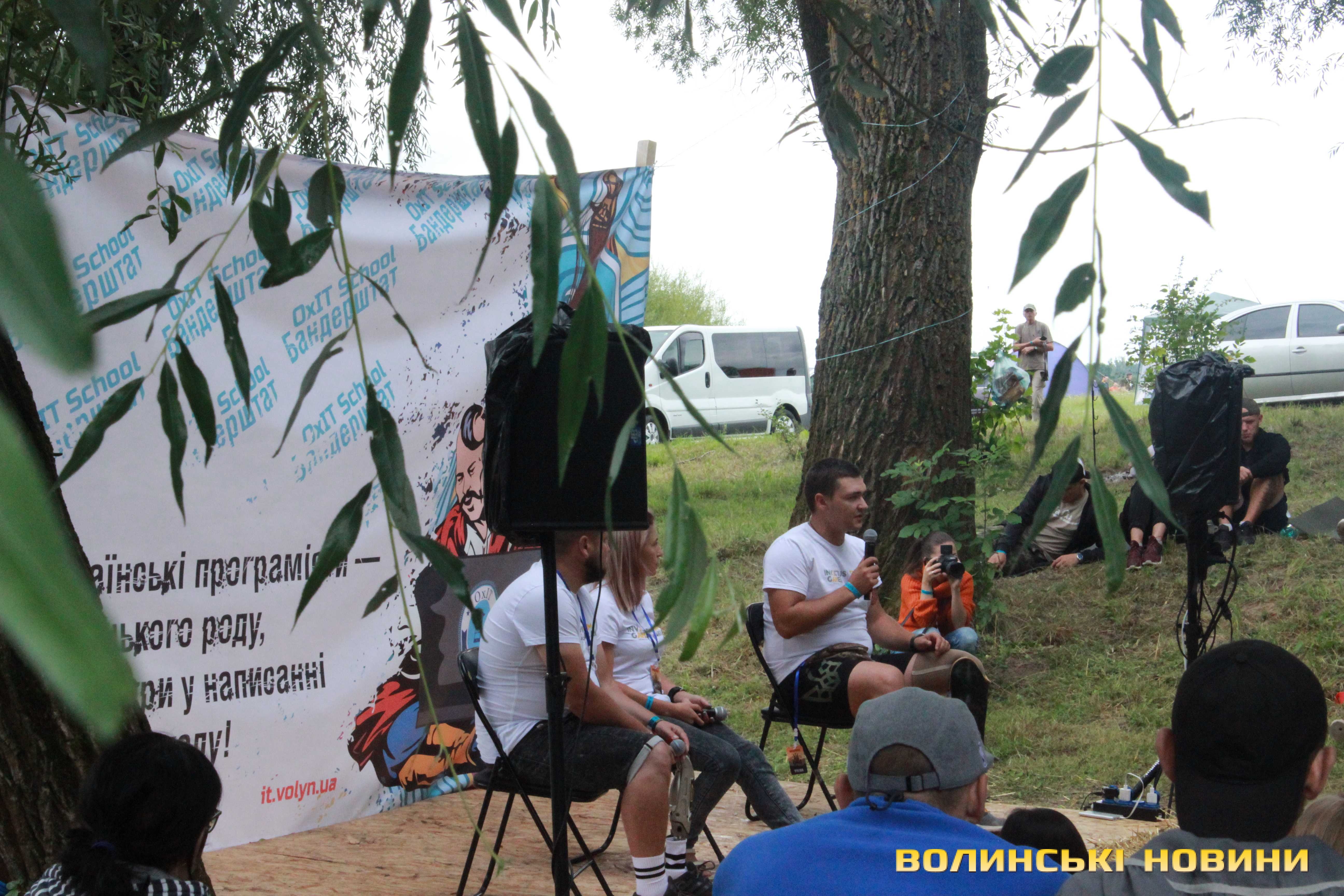 Першою взяла слово волинянка, у минулому один із організаторів Бандерштату, боєць батальйону імені Кульчицького Майя Москвич, яка розповіла, що її уявлення про війну кардинально відрізнялися від того, що вона побачила наживо. Дівчина поділилася, що на війні вона втратила чимало здоров’я і через проблеми зі спиною змушена була залишити військо.