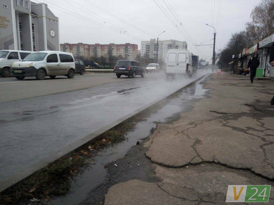 «Можливо, вода десь і потрапляє на вулицю, адже водоприймальні колодязі зливової каналізації знаходяться біля узбіччя дорожнього полотна, тож якщо туди виливають воду – іде пар», - пояснює Володимир Біньковський.