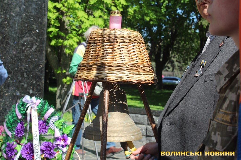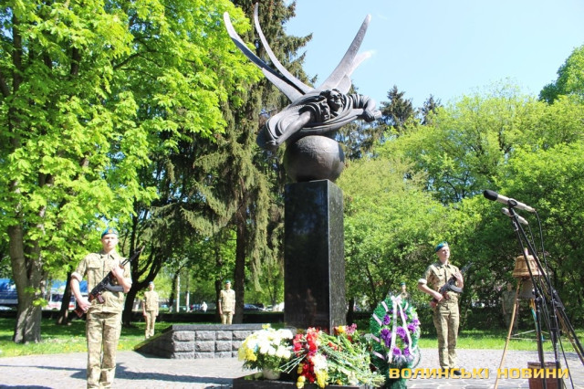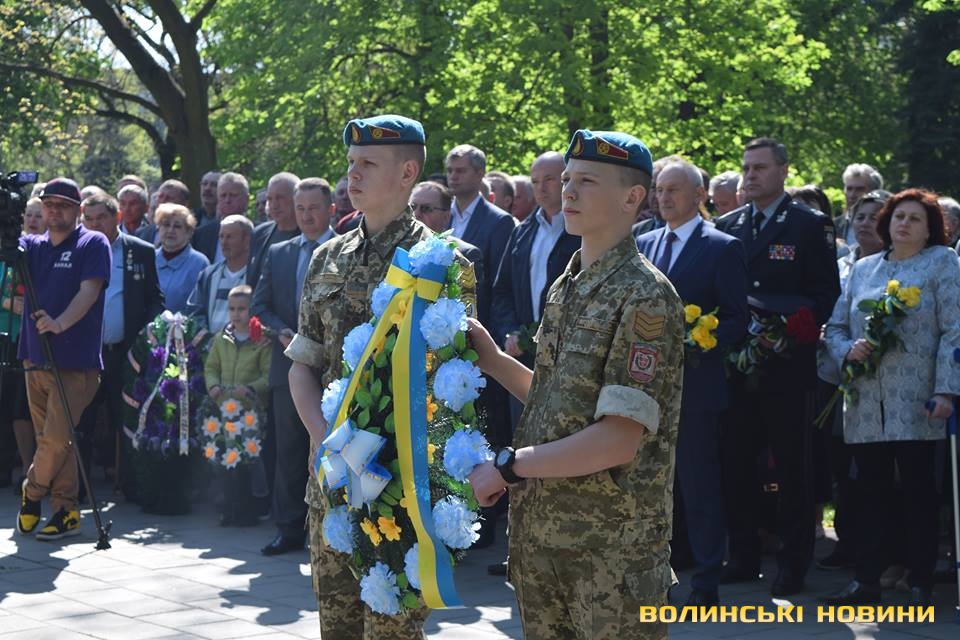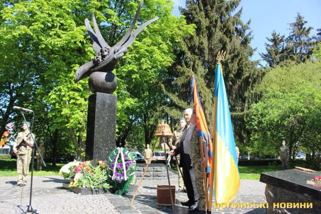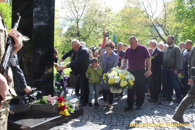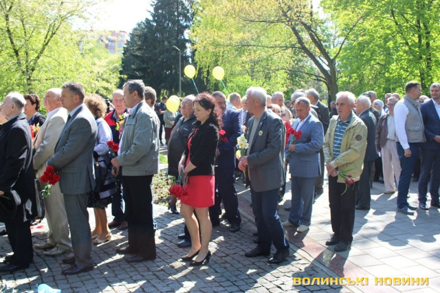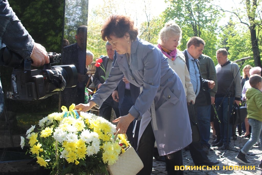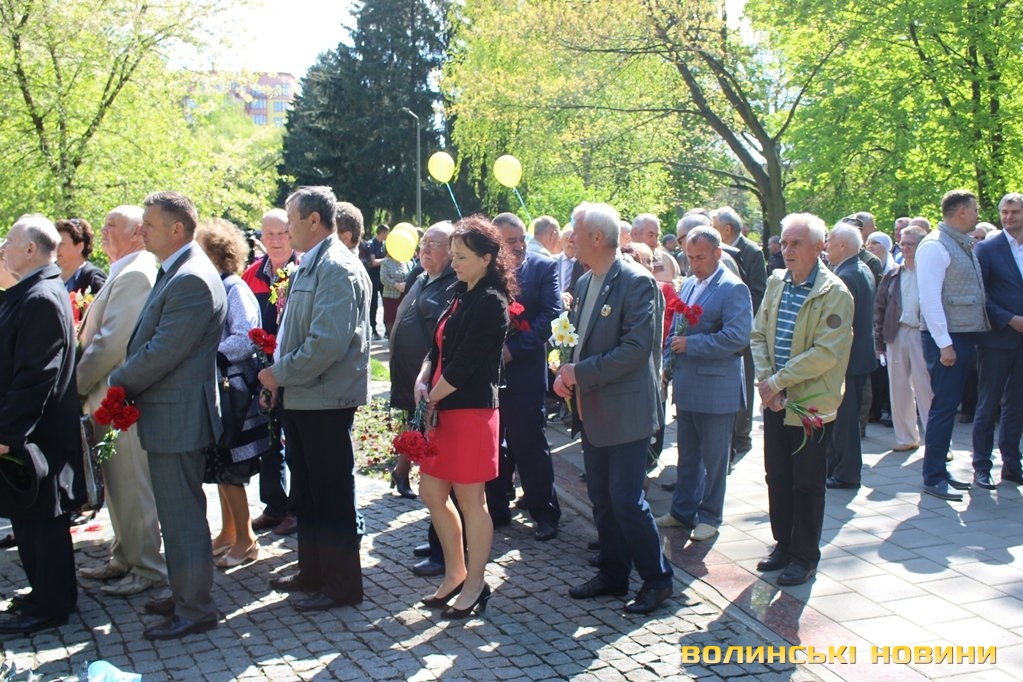 Зараз чорнобильці втратили те, що допомагає їм жити, а завтра це можуть втратити атовці, післязавтра ще якась категорія. Проблема в тому, що депутати не думають про народ, а думають, як заробити гроші. Це все буде закінчуватися гарними словами і днями пам’яті, але далі нічого відбуватися не буде. Безумовно це докорінно потрібно ламати, адже всі повинні розуміти та пам’ятати, що живуть завдяки цим людям: як чорнобильцям, так і тим, хто зараз на сході захищає нашу батьківщину. Потрібно жити по совісті», - зазначив Ігор Палиця та додав, що Волинська обласна рада намагалася долучитися до вирішення цієї проблеми, але на численні запити не дали жодної копійки.Насамкінець всі охочі поклали квіти до підніжжя монументу, а дітки, своєю чергою, випустили в повітря символічні жовті та блакитні кульки, які здійнялися в небо.Учасник ліквідації наслідків Чорнобильської катастрофи Ярослав Плита пригадав, що в 1987 році він проходив службу в силових структурах, тож спочатку його відправили до Києва, а тоді безпосередньо до самої ЧАЕС.
