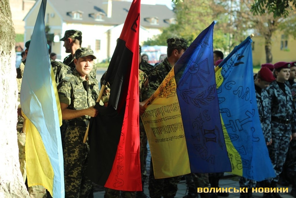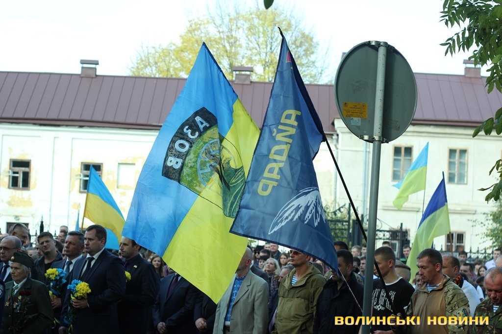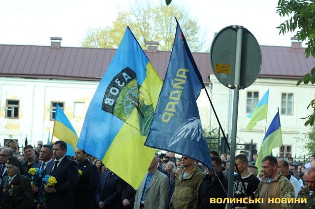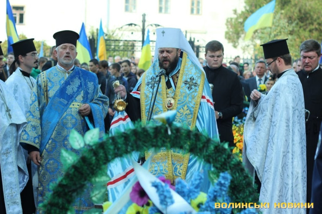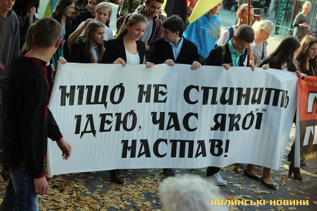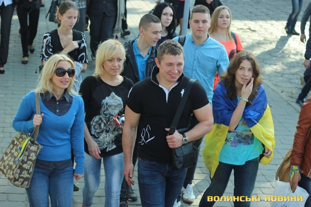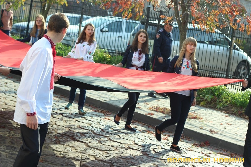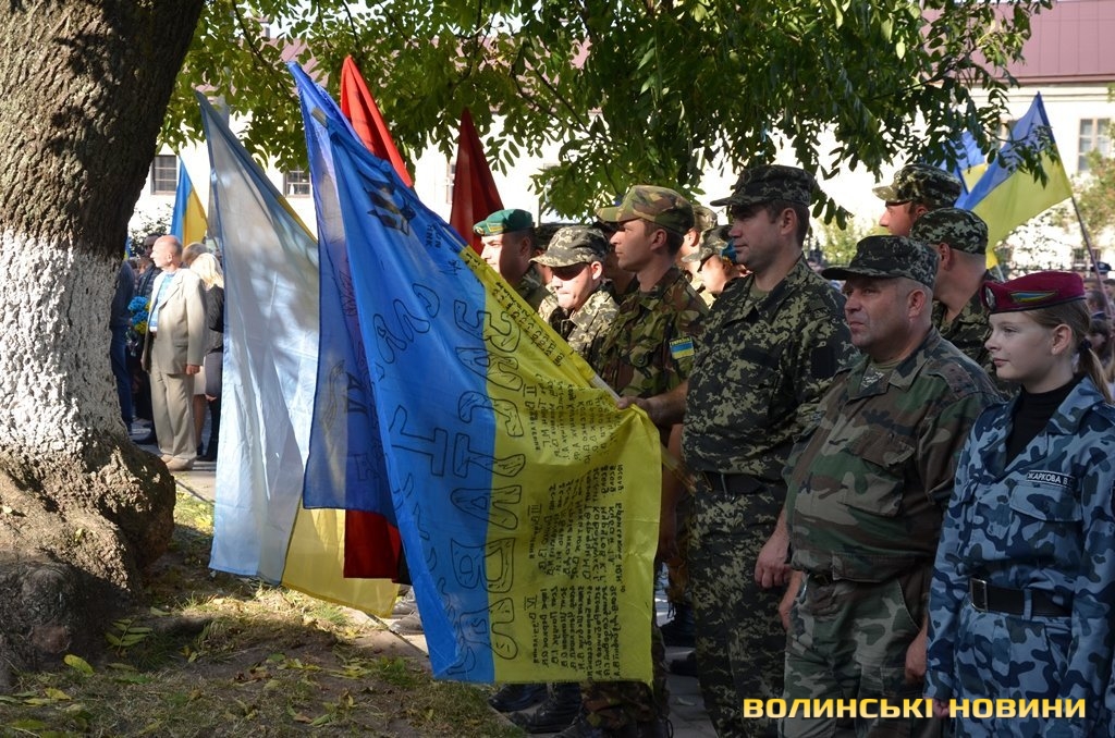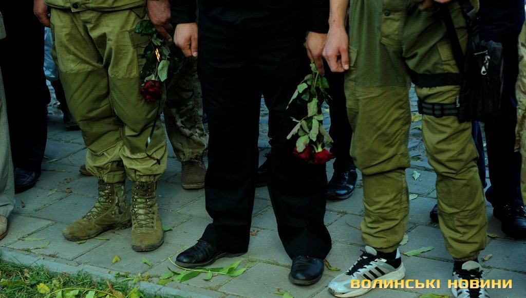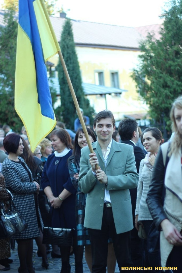 Після тужливої пісні-реквієма «Вічная пам’ять» колона вирушила до Театрального майдану міста, де відбулась посвята в ліцеїсти учнів Волинського обласного ліцею з посиленою військово-фізичною підготовкою.