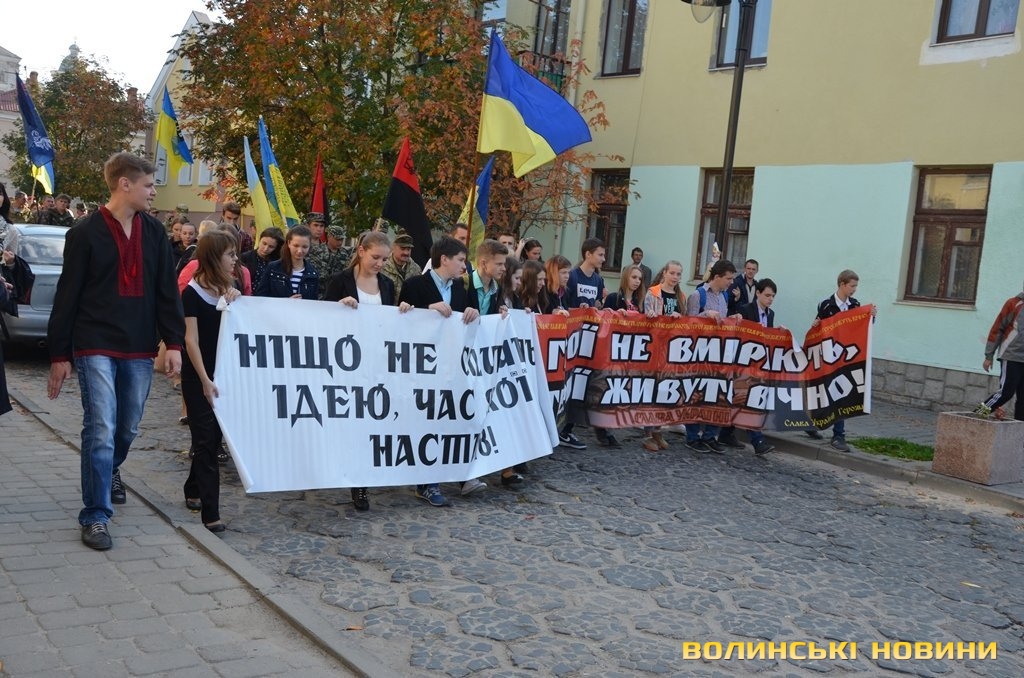Марш Героїв центральними вулицями міста відбувся сьогодні, 14 жовтня. Ходу приурочили до свята Покрови Пречистої Богородиці, до Дня українського козацтва та Дня створення Української Повстанської Армії. А також, згідно з Указом Президента України Петра Порошенка № 806/2014, тепер щорічно 14 жовтня в державі відзначатиметься День захисника України.