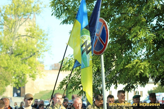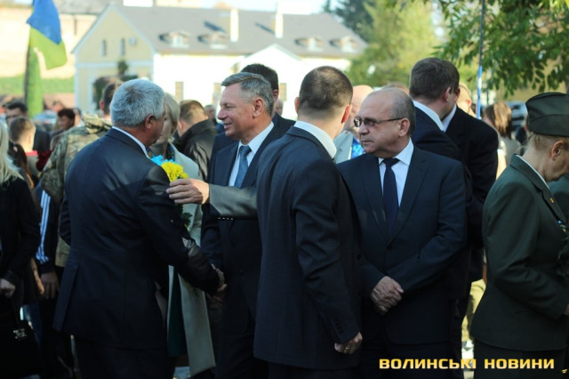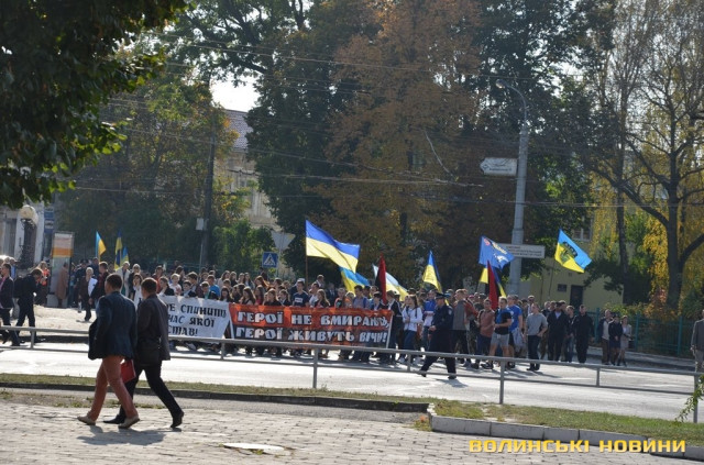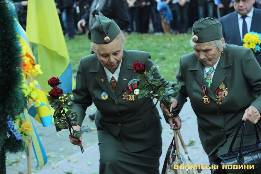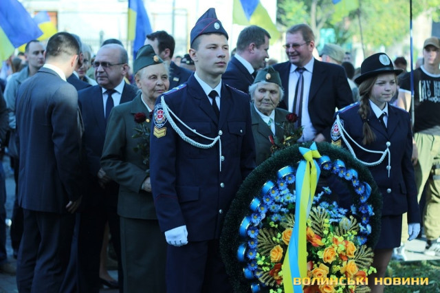 Отож, о 14:30 на Замковій площі розпочалась коротка панахида за загиблими Героями України біля пам'ятника Жертвам політичних репресій. Опісля представники влади, ветерани ОУН-УПА та звичайні лучани вшанували пам’ять тих, хто поклав власне життя за волю та незалежність України, поклавши до стели квіти.